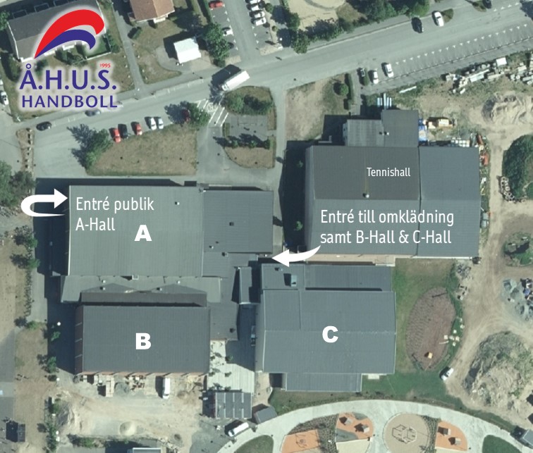 - A-Hall - Spelare, ledare går in via entrén mellan pingisrum och C-Hall sedan genom Gym alternativt ett omklädningsrum. Föräldrar lämnar och hämtar med fördel barnen i entrén.